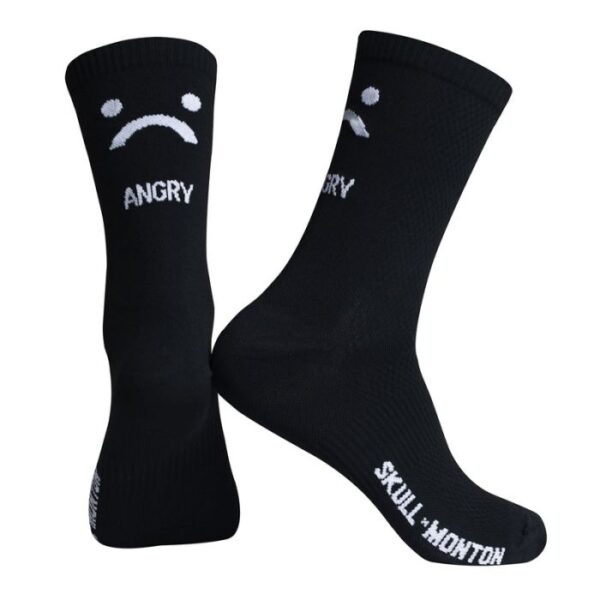 Calcetines ciclistas Skull Monton negros con cara divertida y creativa enojada. Experimente lo último en comodidad de conducción con calcetines de ciclismo.