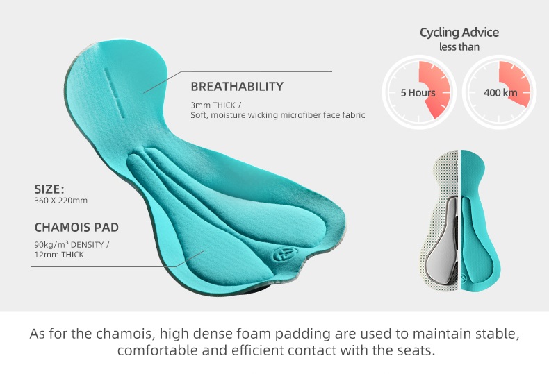 – Badana Rider azul para hombre: Badana ligera que ofrece una excelente funcionalidad de acolchado y espuma, además de un ajuste fresco y cómodo a la bicicleta. La capa es de un tejido de primera calidad y transpirable. La espuma de esta almohadilla es densa y de alta calidad. Su capacidad de absorción de impactos se mantiene durante mucho tiempo.