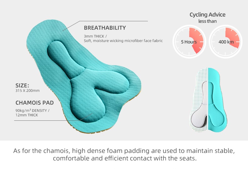 – Badana Rider azul para hombre: Badana ligera que ofrece una excelente funcionalidad de acolchado y espuma, además de un ajuste fresco y cómodo a la bicicleta. La capa es de un tejido de primera calidad y transpirable. La espuma de esta almohadilla es densa y de alta calidad. Su capacidad de absorción de impactos se mantiene durante mucho tiempo.