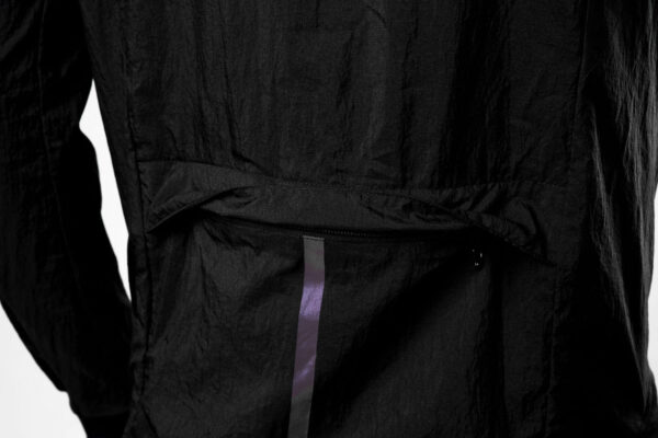 La malla transpirable italiana MITI GRECALE en el interior del cuello se siente agradable . Aberturas de ventilación debajo de la axila para mantener el calor generado. Un gran bolsillo trasero con cremallera para almacenamiento esencial. Estiramiento de los puños para mantener el viento afuera.