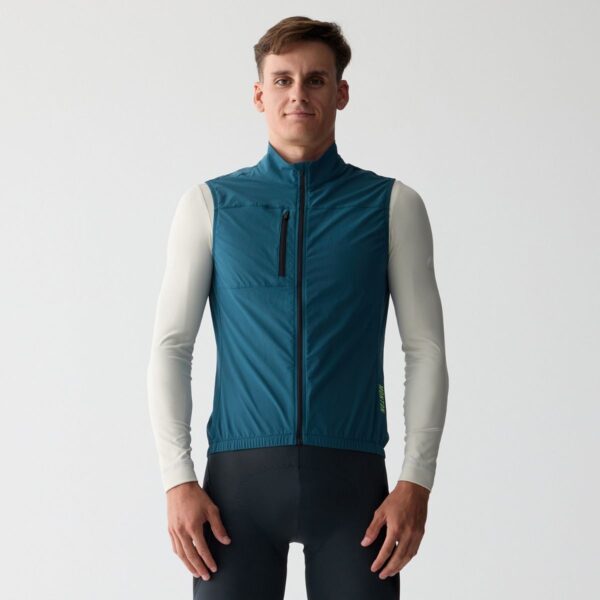 Chaleco de ciclismo MONTON Urban+ azul, sin mangas, cortavientos ligero, con bolsillo en el pecho, resistente al agua y fácil de guardar para climas impredecibles.
