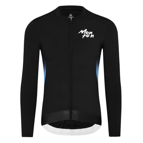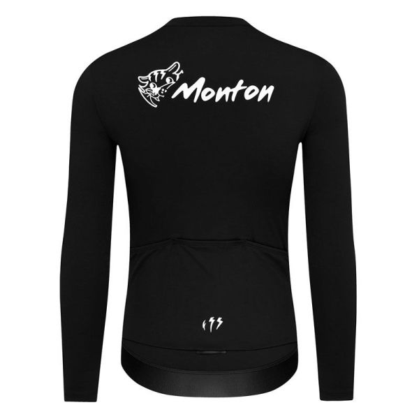 Maillot de ciclismo Monton Lifestyle para hombre, manga larga, color negro. Rango de temperatura: 15°-25°C / 59°-77°F. Ideal para primavera y otoño. Corte holgado que proporciona una excelente sujeción durante el ciclismo en climas fríos.