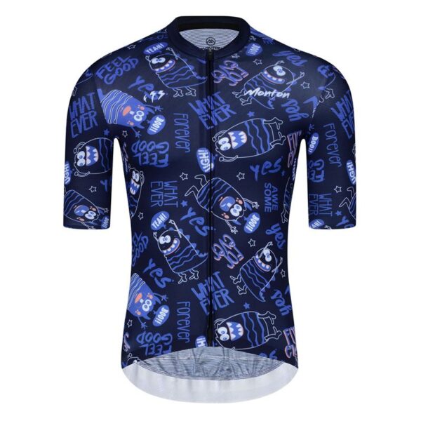Maillot de ciclismo Monton para hombre de corte relajado con el texto YES, WAHTEVER, FEEL GOOD impreso. El dobladillo elástico en la parte inferior del maillot lo mantiene en su lugar mientras se conduce.