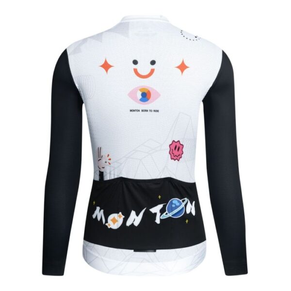 Bonito maillot ciclista de verano de manga larga Monton Lifestyle para protegerse del sol. Confeccionada con dos tejidos ligeros y ultrasuaves, esta camiseta garantiza comodidad y transpirabilidad incluso en condiciones de calor y humedad.