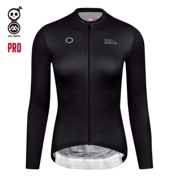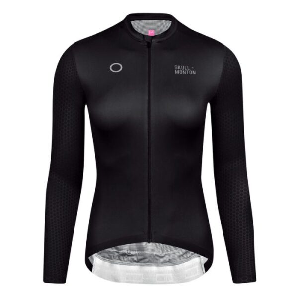Maillot ciclista de manga larga de verano Skull Monton para hombre, ajuste aerodinámico para climas cálidos. Esta camiseta negra está confeccionada con 5 tejidos diferentes, lo que la hace extremadamente transpirable y súper elástica.