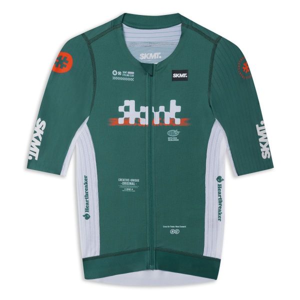 - Mangas Aero Stripe: El tejido de las mangas, con sutiles rayas, optimiza el flujo de aire en los brazos para una mayor eficiencia aerodinámica.