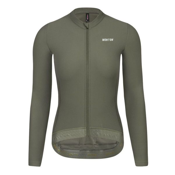 Maillot térmico de manga larga para ciclismo Urban+ para mujer, color verde, disponible online. Confeccionado con un tejido suave de rayas tridimensionales con forro polar que proporciona calidez y comodidad.