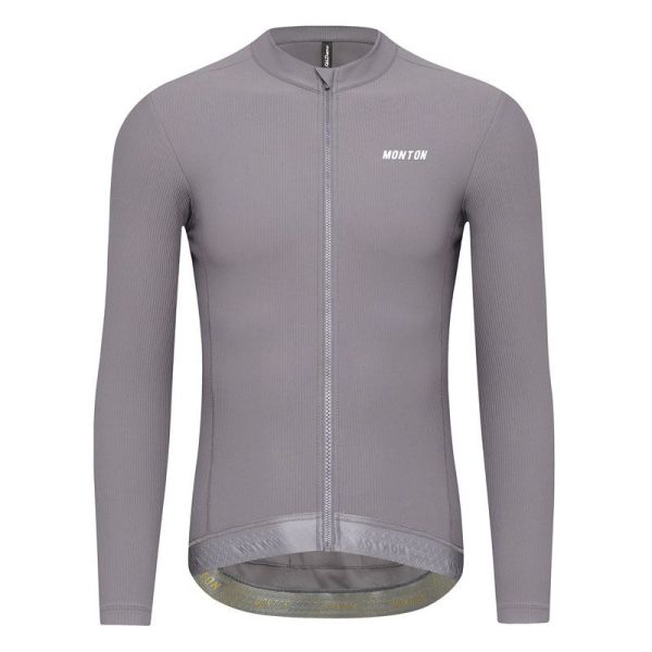 Maillot térmico de manga larga para ciclismo Urban+ para hombre, color gris, disponible online. Confeccionado con un tejido suave de rayas tridimensionales con forro polar que proporciona calidez y comodidad.