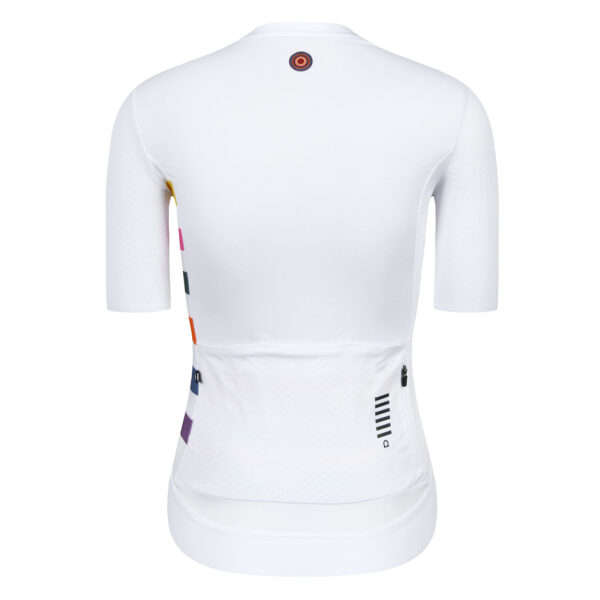 Su tela Deansilk en la parte delantera y la tela Fanshaped de origen italiano cuenta con una ligereza única que permiten al ciclista mantenerse fresco y cómodo, ademas de entregar la expulsión del sudor que tu cuerpo necesita constantemente durante tus entrenamiento. En los brazos esta tricota entrega especial comodidad ya que se ajusta de la mejor forma a tus brazos, permitiendo que la sangre circule de mejor forma generando así un mejor rendimiento.