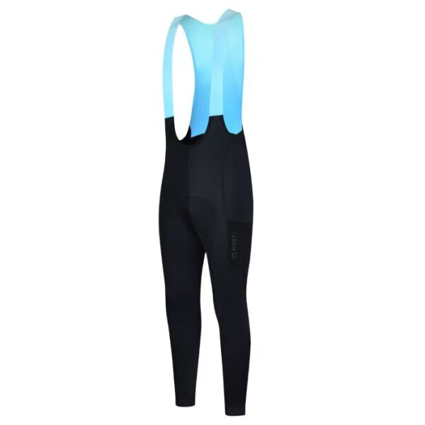 Culote largo con tirantes de ciclismo de compresión negro Monton para hombre con acolchado y 2 bolsillos laterales para almacenamiento, ideal para protegerse en días frios pero no extremos.