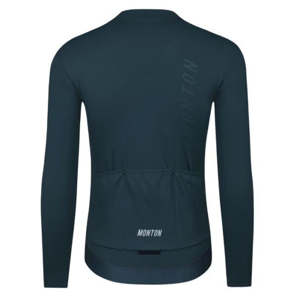 Maillot ciclista térmico Monton para hombre negro para climas más fríos o capa base fina con forro polar en invierno. Maillot ciclista de forro polar cepillado reforzado con 3 bolsillos traseros.